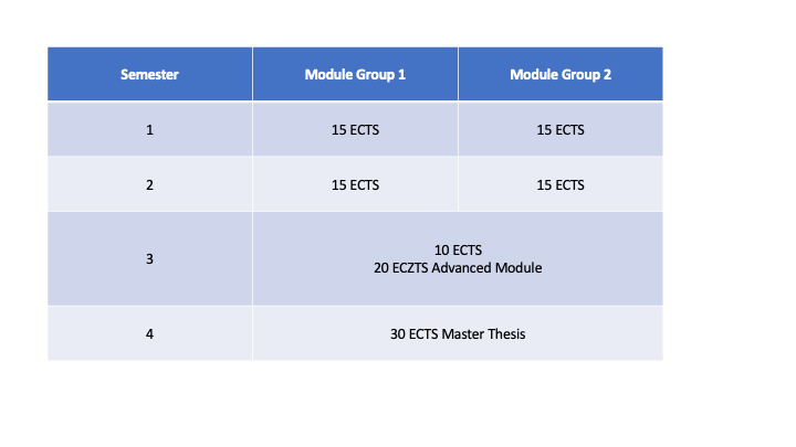 Within the first year of the Master program in Integrated Life Sciences the students take courses from two of the three module groups (each 30 ECTS):